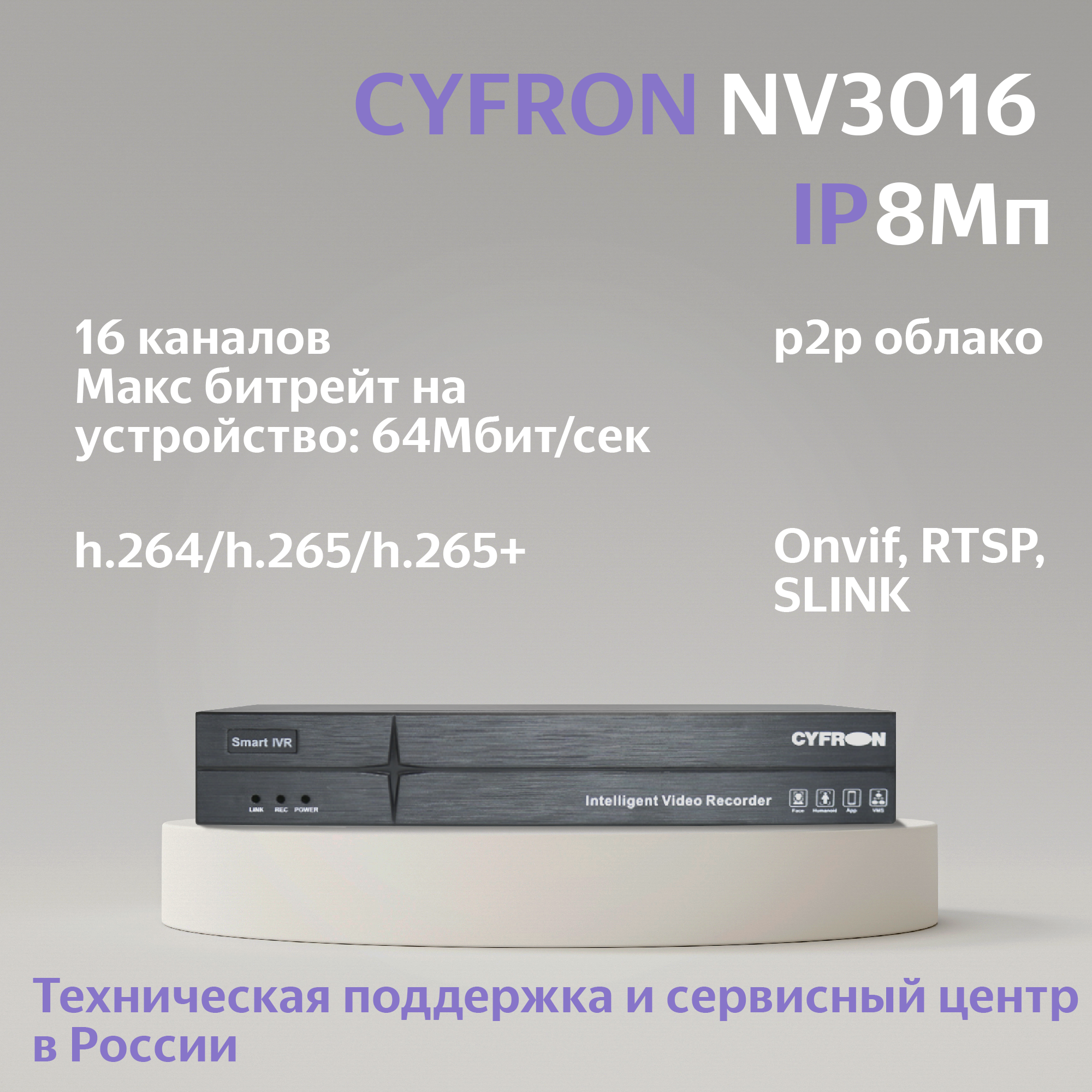 Профессиональный IP видеорегистратор CYFRON NV3016 (NV3016-A) создан с применением новейших технологий в сфере обеспечения безопасности. Поддерживает запись до 16 IP камер с максимальным разрешением 8Мп, при этом может воспроизводить 4 канала архива.