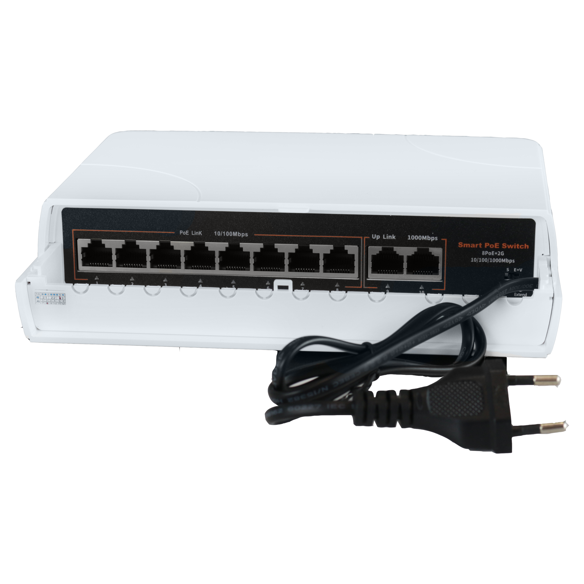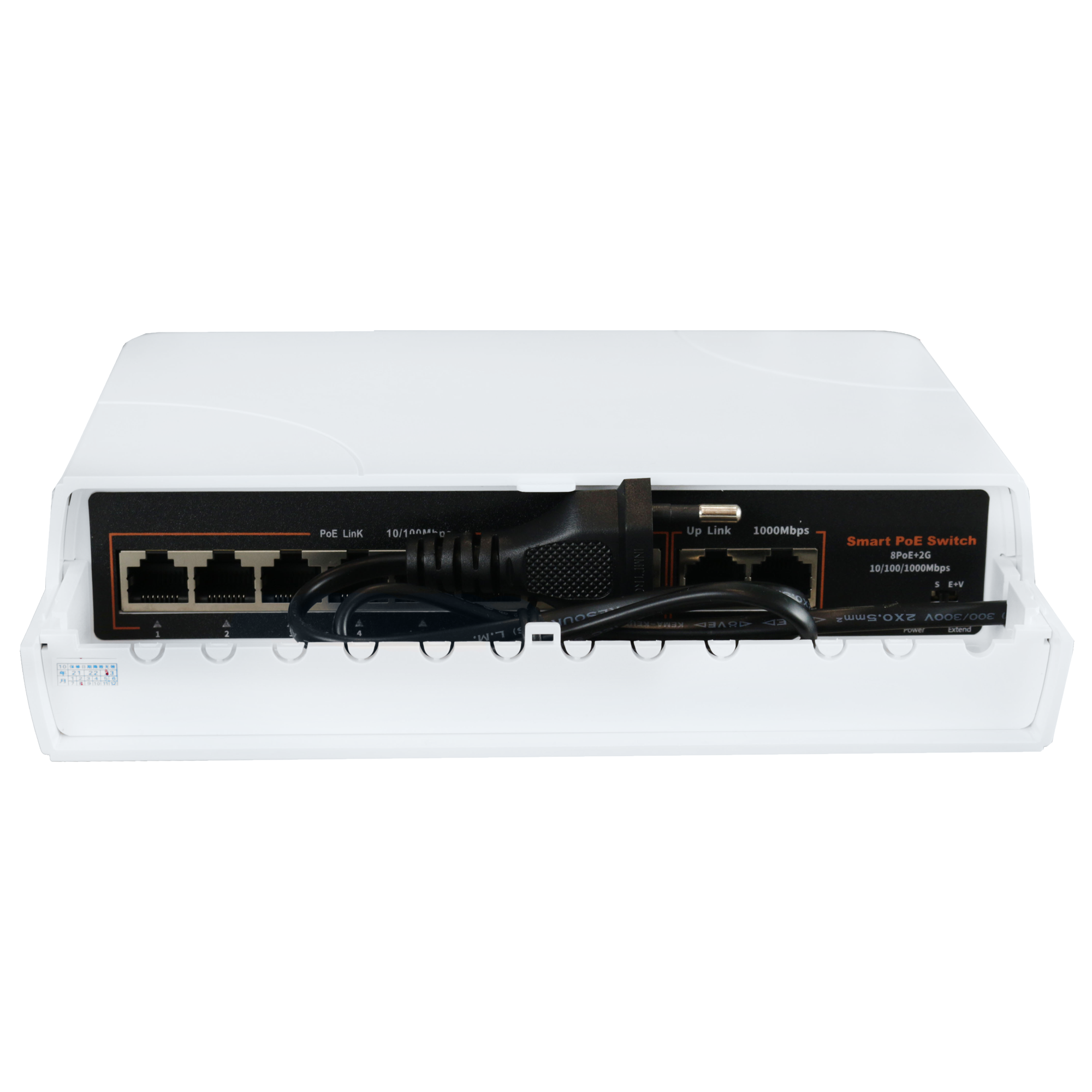 Имеет 8 портов PoE (стандарт IEEE 802.3af/at PoE) 10/100Mb и 2 порта 10/100/1000Mb.