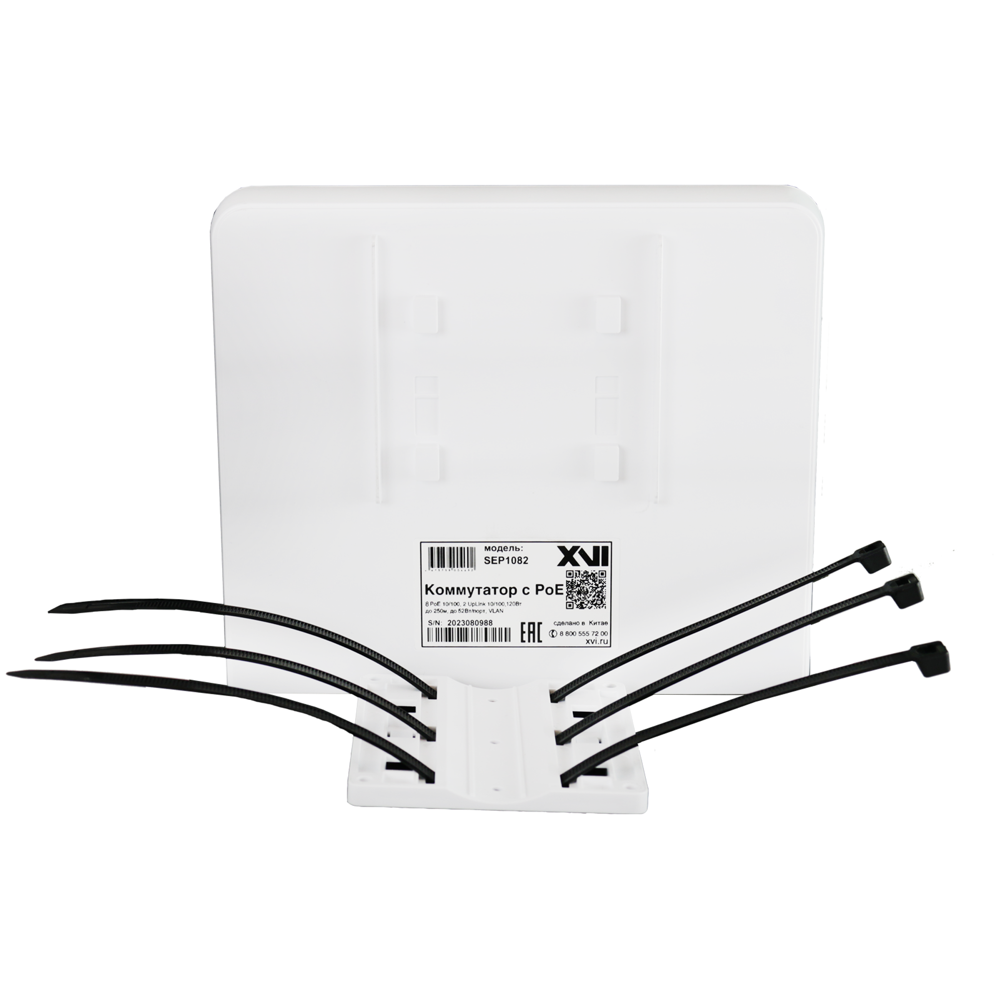 Коммутатор XVI SEP1082, 10 портов: 8 портов 100Мбит/c с PoE + 2 порта 1Гбит/с, 120Вт, Уличный